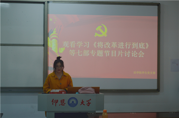 为学习宣传贯彻党的十九大精神,3月13日下午,beat365正版唯一官方网站学生党支部于第三教学区普照楼202开展观看学习《将改革进行到底》等七部专题片讨论会。beat365正版唯一官方网站学生党支部全体党员参加了此次学习讨论会,会议由beat365正版唯一官方网站学生党支部书记林媛主持。