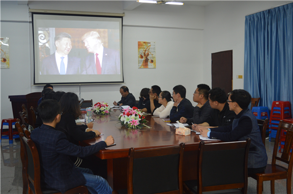 为喜迎党的十九大,全面贯彻党的思想,3月21日下午,beat365正版唯一官方网站教工党支部全体党员在第三教学区普照楼法律诊所开展观看《大国外交》专题片学习会议。会议由beat365正版唯一官方网站教工党支部书记李秋实主持。