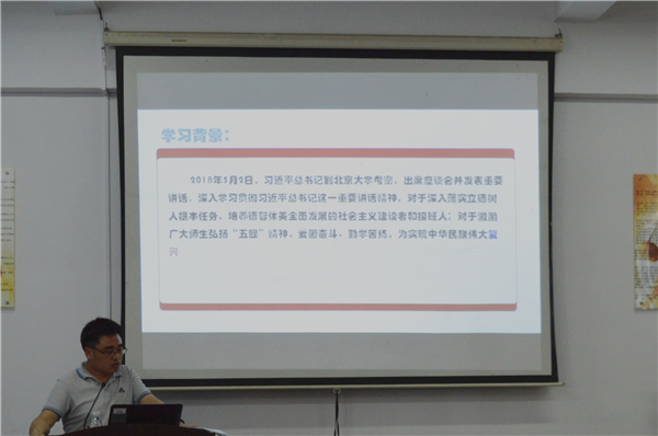 5月17号下午,beat365正版唯一官方网站组织的教工支部学习会在第三教学区普照楼法律诊所召开,beat365正版唯一官方网站教工支部党员参加了此次会议,本次会议由beat365正版唯一官方网站教工党支部书记李秋实主持。  会议现场 会上,李秋实带领支部党员深入学习贯彻“习近平总书记在北京大学师生座谈会上重要讲话”,并从政治、理论、实践意义三个方面对讲话精神进行解读,要求全体党员深入学习和研究习近平教育思想,坚持把教育摆在优先发展的战略地位,努力实现“一个基本观点、三项基础性工作、四点殷切希望”的工作要求。支部党员结合自身工作,畅谈学习体会,并围绕深入学习和研究习近平教育思想进行了讨论。期间,党员们观看纪录片《厉害了,我的国》,感受着中国人民在全面建设小康征程上的伟大奋斗,见证党的十八大以来中国取得了改革开放和社会主义现代化建设的历史性成就。  文件讲解 通过本次学习,使教师党员进一步加深了对党的认识,同时也更加深刻地明确作为新时代党员的历史使命和责任担当。 (邱小洁/文 康美燕、林聪婉/图)