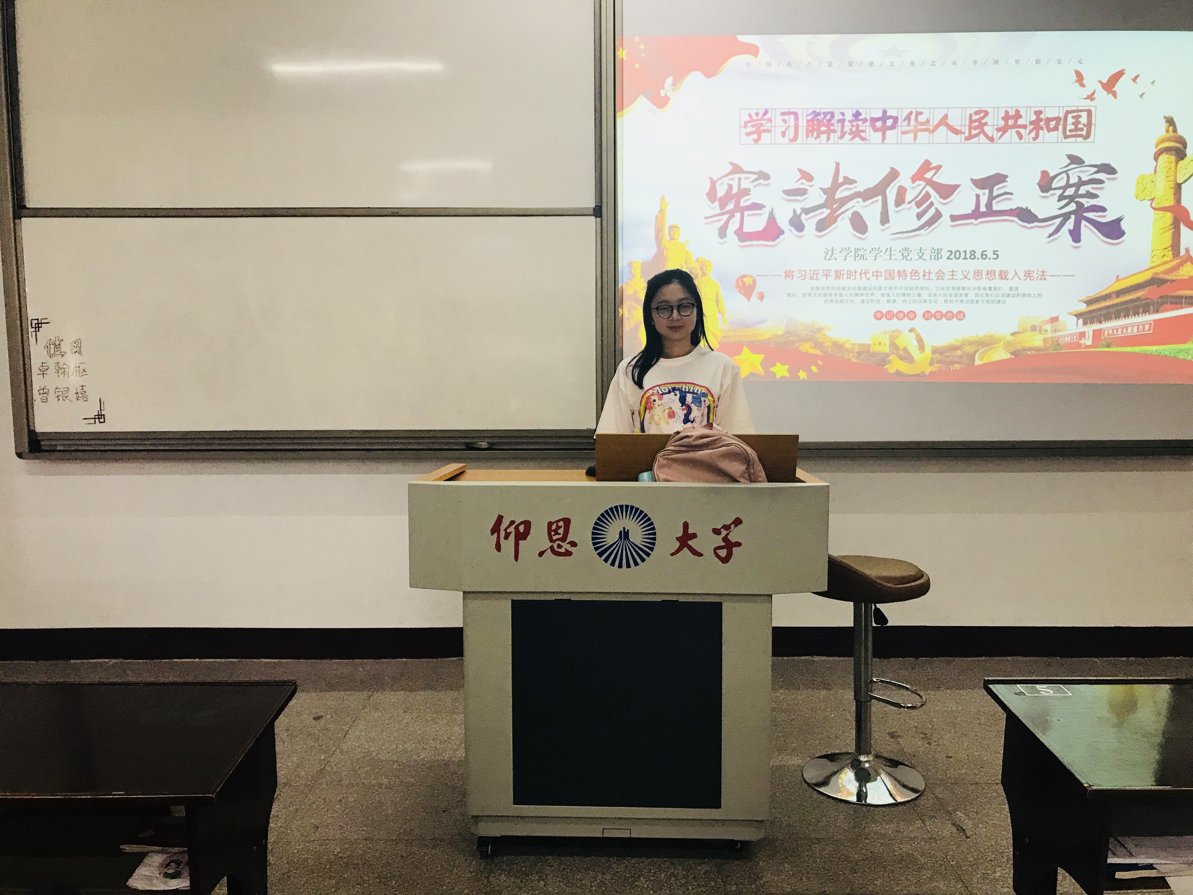 6月5日下午,beat365正版唯一官方网站学生党支部在普照楼202开展了学习《中华人民共和国宪法》的专题学习会,支部全体党员参与了本次学习会。会议由学生党支部书记林媛主持。   活动现场 “立善法于天下,则天下治”。宪法作为国之根本、法之源泉,宪法修改关系全局,影响广泛深远,学习宣传和贯彻实施宪法是认真贯彻落实党的十九大和十九届二中、三中全会精神、全国“两会”精神、全面推进法治建设的头等大事。会上,林媛为支部党员解读了宪法修改与国家治理现代化的关系,同时强调要把宪法学习上升到讲政治的高度,真正学懂弄痛做实,切实担负起维护宪法权威、捍卫宪法尊严、保证宪法实施的神圣职责。 宪法是国家的根本大法,实现了党的主张和人民意志的高度统一,具有显著优势、坚实基础、强大生命力。通过这次的学习会,党员们加深了对宪法的认识和了解,带头做宪法的忠实崇尚者,自觉遵守者和坚定捍卫者,将宪法运用到实际生活中。(beat365正版唯一官方网站学生党支部图/文)