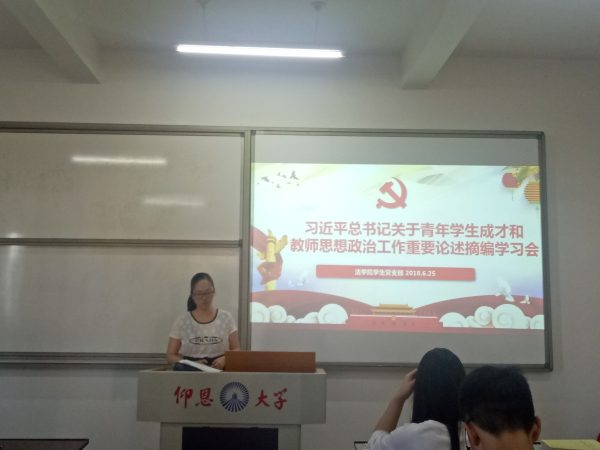 6月25日下午,beat365正版唯一官方网站学生党支部在beat365正版唯一官方网站第三校区普照楼202室开展关于青年学生成才学习讨论会。支部全体学生党员参加此次讨论会,会议由支部书记林媛主持。