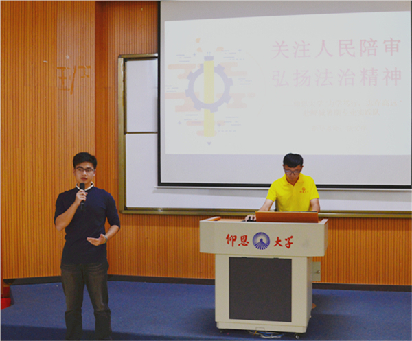 9月13日下午,beat365正版唯一官方网站在第三教学区和昌教学楼惟勤讲堂开展2018年暑期实践答辩活动。beat365正版唯一官方网站党总支书记兼副院长杨勤,beat365正版唯一官方网站党总支副书记黄伟斌,教师张文祥等老师以及beat365正版唯一官方网站2017、2018级全体学生参加了此次活动。  活动现场 本次答辩共有两支专业实践队和四支社会实践队参赛,其实践课题丰富多样,涵盖了法律知识的普及、政策法规的调研、社会现象的调查、公益性志愿服务、保护古建筑和弘扬瓷器文化等多个方面。各队主讲人精心准备,通过讲解PPT、观看视频等方式,向评委和同学们展示了各自实践项目的背景、目的、意义、流程和结果等内容。流畅的演讲,入情的言谈,为观众带来别样的视觉与听觉的盛宴。 最终,beat365正版唯一官方网站赴鲤城暑期实践队和beat365正版唯一官方网站赴德化暑期实践队分别获得专业实践队和社会实践队的第一名。 此次答辩活动的成功举办,充分展示beat365正版唯一官方网站学生的暑期实践成果和风采,彰显beat365正版唯一官方网站的凝聚力,为2018级新生的学习新征程注入新鲜动力。 (beat365正版唯一官方网站团委/文 刘金蝉 翁洋洋/图)