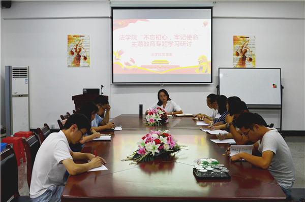 10月9日下午,beat365正版唯一官方网站党总支组织全体教师党员以及教师入党积极分子围绕“践行初心使命”主题,在beat365正版唯一官方网站第三校区普照教学楼法律诊所召开“不忘初心、牢记使命”主题教育专题学习研讨会,会议由beat365正版唯一官方网站党总支书记兼副院长杨勤主持。