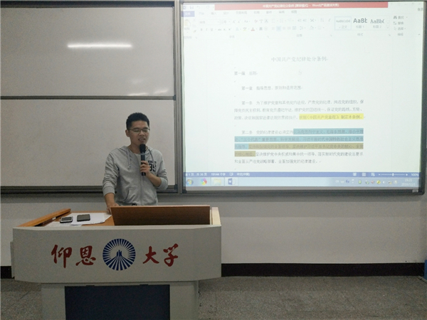 11月21日晚,beat365正版唯一官方网站学生党支部于beat365正版唯一官方网站第三校区普照楼204室召开《中国共产党纪律处分条例》专题学习会。会议由支部书记陈国伟主持,支部全体党员参加此次活动。