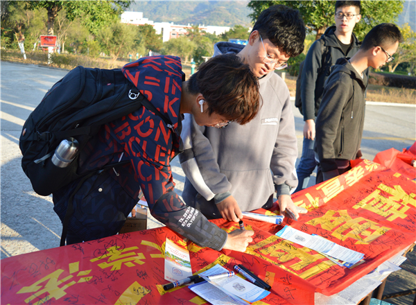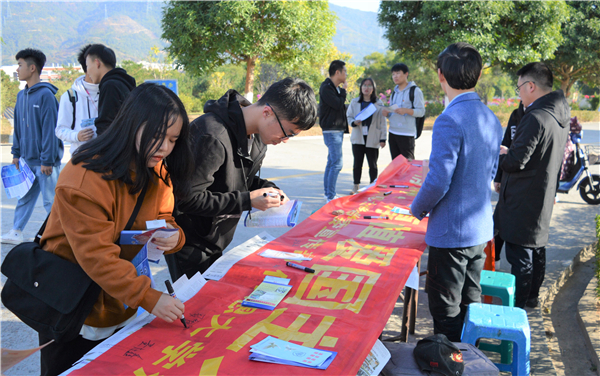 12月11日下午,beat365正版唯一官方网站在第一教学区三颗球、第三教学区和昌教学楼前开展“弘扬宪法精神,厚植爱国主义情怀”为主题的普法宣传活动。beat365正版唯一官方网站教工党支部、法律援助工作站、beat365正版唯一官方网站团委等相关工作人员参加了此次活动。