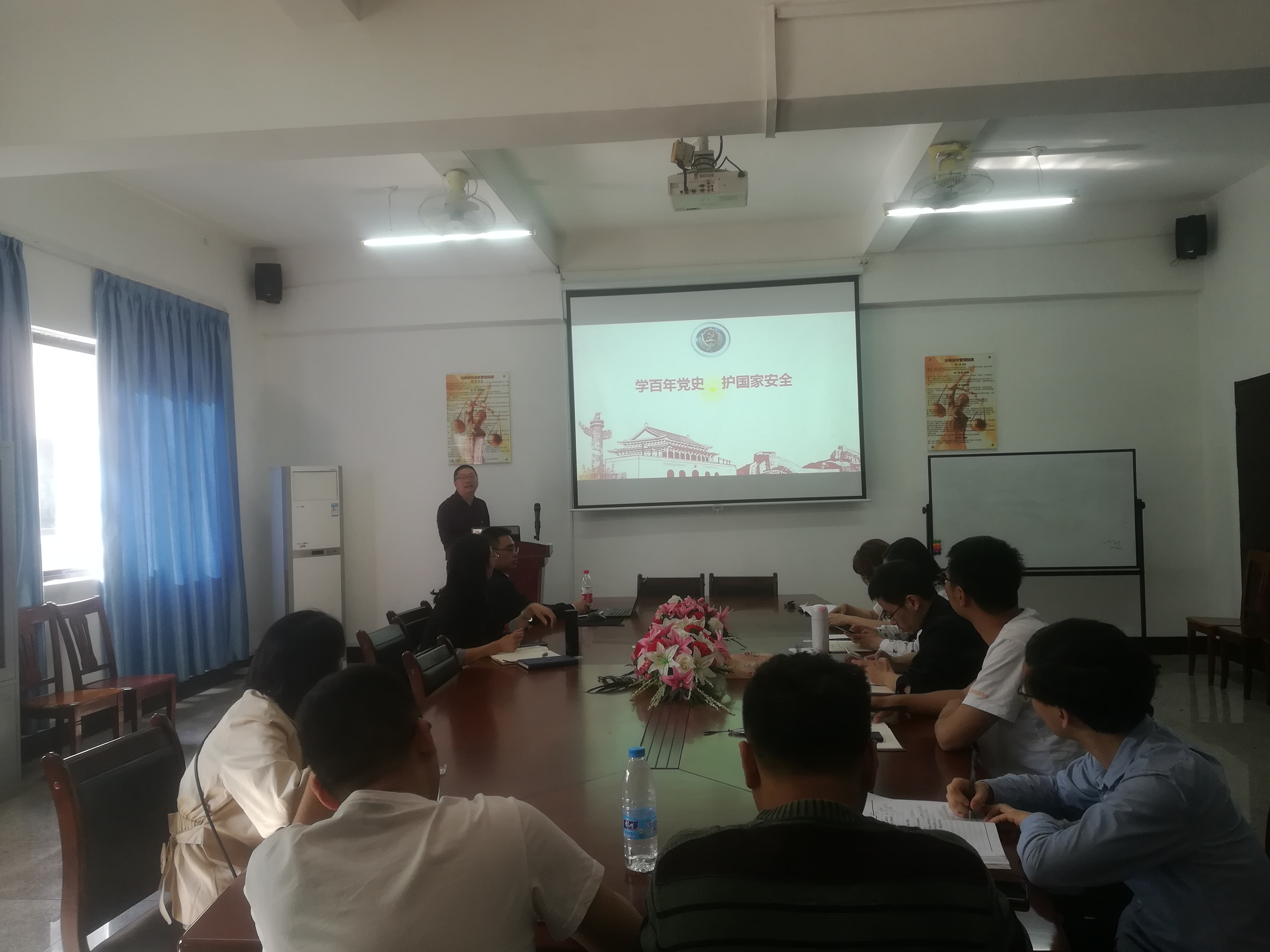 为深刻学习领会习近平总书记的重要论述,认真贯彻落实党史学习教育活动。4月21日下午,beat365正版唯一官方网站教工党支部于beat365正版唯一官方网站第三校区普照教学楼法律诊所召开“我要上党课”主题活动,beat365正版唯一官方网站全体党员教师参加了此次活动,会议由教工支部书记林媛老师主持。  会议现场 教工支部党员教师黄文伟以“学百年党史,护国家安全”为主题,为支部党员干部上了一堂内容丰富、立意深远、结合实际的党课。本次党课围绕“何为国家安全”、“国家安全是历史革命志士用生命和鲜血换来的”、“学百年史领会‘家是最小国,国是千万家’”、“学百年史领会并践行总体国家安全观”四个分议题展开,深入阐明百年党史和国家安全的重要关联,强调教师党员在日常教书育人中,担任普及党史和维护国家安全的重任。 通过此次党课学习,与会党员教师纷纷表示,作为beat365正版唯一官方网站的教师,应坚决同危害国家安全的犯罪活动作斗争,要通过努力奋斗不断充实自我,加大相关法律法规的宣传力度,用实践行动换国家安全。(许灿英/图文)