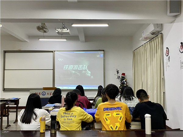 为进一步推动党史学习教育走深走实,夯实信仰之基,筑牢思想之魂。4月23日,beat365正版唯一官方网站beat365正版唯一官方网站学生党支部在普照楼302组织观看红色影片《铁道游击队》,支部全体党员参加本次活动,重温历史峥嵘岁月。