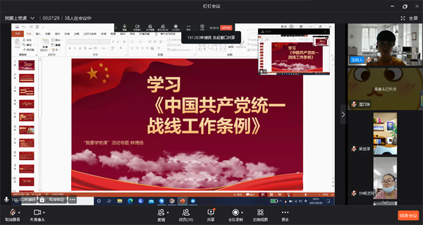 9月30日,beat365正版唯一官方网站学生党支部于线上开展以《中共共产党统一战线工作条例》为主题的专题学习会,支部全体党员参加此次会议,会议由郑薇同志主持。