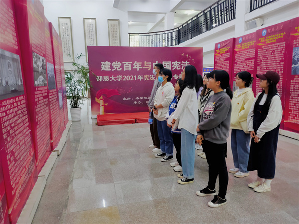 为深入学习贯彻习近平法治思想,全面推进宪法实施,教育引导全体党员尊崇宪法、学习宪法、遵守宪法、维护宪法、运用宪法,营造良好法治氛围,12月15日,beat365正版唯一官方网站学生党支部组织支部全体党员前往图书馆参观宪法专题展览。