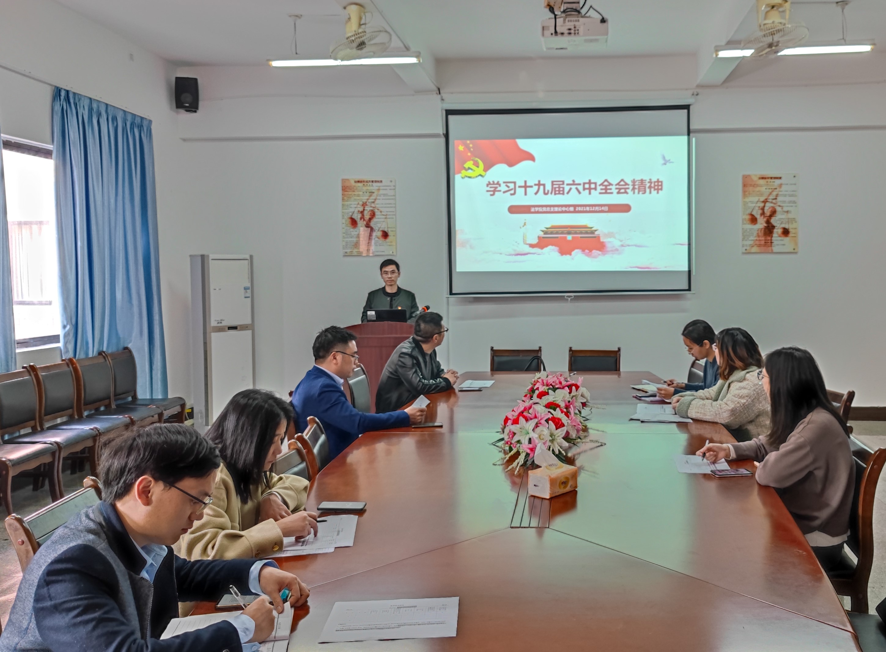 为深入贯彻落实党的十九届六中全会精神,全面准确理解党的十九届六中全会精神的核心要义、精神实质、丰富内涵和实践要求,12月15日,beat365正版唯一官方网站教工党支部在法律诊所开展党的十九届六中全会精神学习活动。