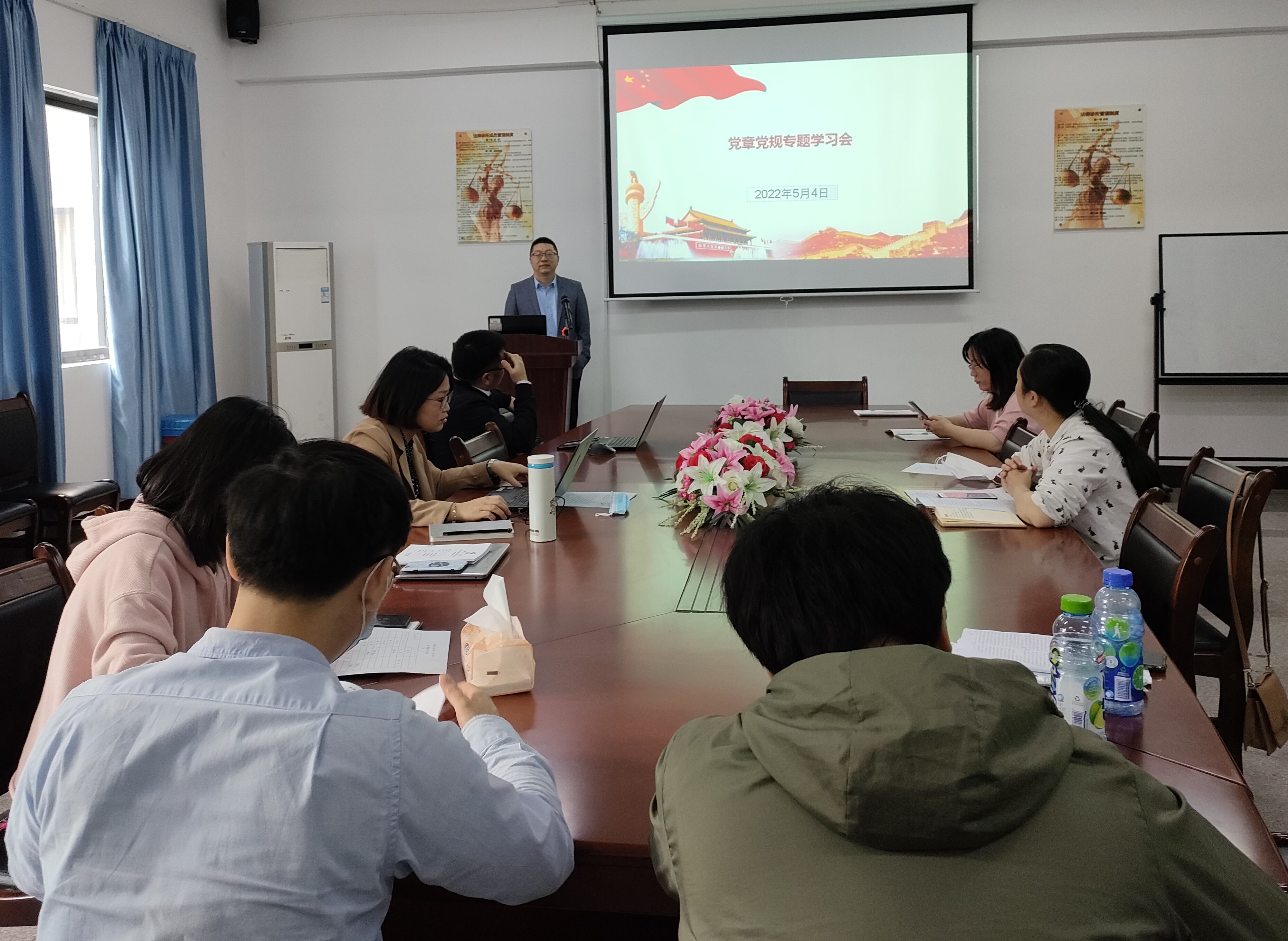 5月4日下午,beat365正版唯一官方网站教工党支部开展党章党规专题的学习活动,教工党支部书记黄文伟老师主持会议并讲话,教工党支部成员参加会议。