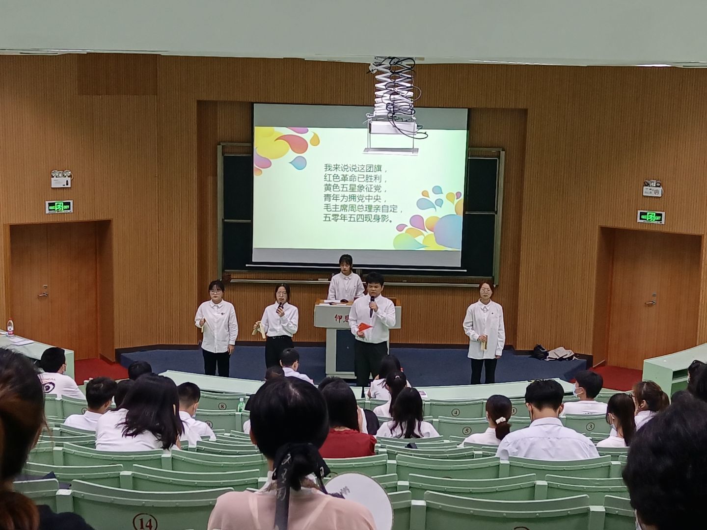 为激发广大团员青年的爱党、爱国热情,切实增强团员的历史责任感和使命感,5月31日晚,beat365正版唯一官方网站beat365正版唯一官方网站于第三教学区和昌教学楼思齐讲堂开展“喜迎二十大 永远跟党走 奋进新征程”团日活动比赛。beat365正版唯一官方网站党总支书记兼副院长杨勤、beat365正版唯一官方网站辅导员吴姗姗、beat365正版唯一官方网站教师张义雄出席并担任本次活动评委,19至21级全体团支部到场参加比赛。