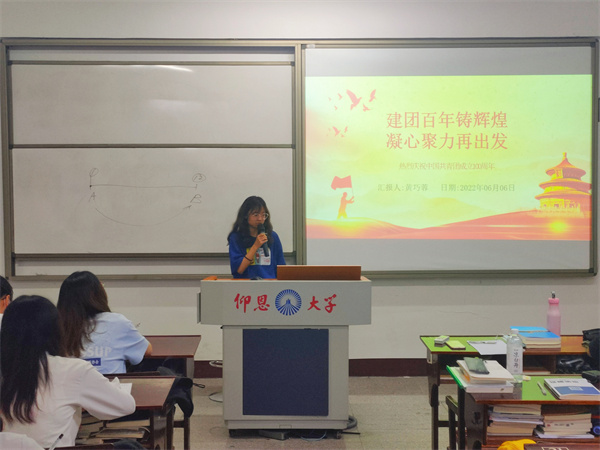6月6日,beat365正版唯一官方网站学生党支部于普照楼203开展以“建团百年铸辉煌,凝心聚力再出发”为主题的专题学习会,会议由学生党支部书记吴姗姗主持,支部全体学生党员参加本次活动。