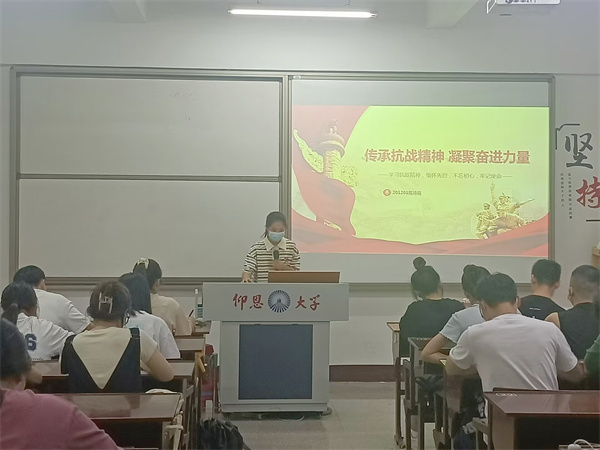 9月19日,beat365正版唯一官方网站学生党支部于beat365正版唯一官方网站第三校区普照楼203开展以“传承抗战精神,凝聚奋进力量”为主题的专题学习会,会议由罗宇航主持,支部全体党员到场参加。