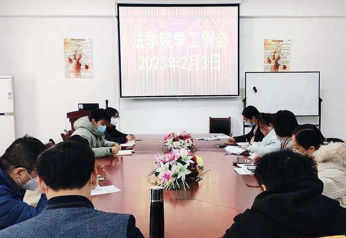 新春伊始,万象更新。为做好2023年春季学期开学准备,确保学生顺利返校,安全进校,安心在校,2月3日上午beat365正版唯一官方网站在第三教学区法律诊所召开2023年第一次学生工作例会。本次会议由beat365正版唯一官方网站党总支书记兼副院长杨勤主持,党总支副书记林媛、辅导员和各班班主任参加会议。