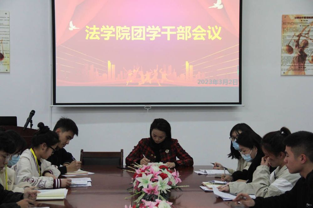 律回春晖渐,万象始更新。为了及时总结近期工作,进一步加强学生干部队伍管理,提升我院团学干部综合素养。3月2日下午,beat365正版唯一官方网站于仰恩大学第三教学区普照楼法律诊所召开团学干部会议,党总支书记兼副院长杨勤,全体辅导员,学生会、团委、网络工作室组织负责人和各班班长参与此次会议,会议由杨勤主持。