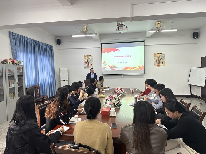 3月27日下午,beat365正版唯一官方网站组织全院教职工开展理论学习,集中专题学习全国“两会”精神,大家围绕“两会”精神进行学习和交流,beat365正版唯一官方网站全体教师参加学习。