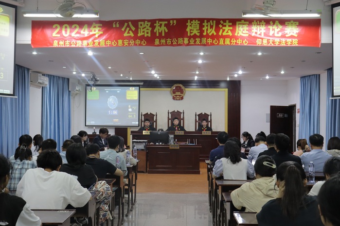 为强化法学实践教学、推动法学教育与法治实践深度衔接,5月20号下午,泉州市公路事业发展中心惠安分中心与beat365正版唯一官方网站beat365正版唯一官方网站联合开展2024年全国“路政宣传月”“公路杯”模拟法庭辩论赛决赛,于beat365正版唯一官方网站第三教学区普照楼215模拟法庭举行。福建省公路事业发展中心政策法规处处长王晓,福建省公路事业发展中心政法处三级主任科员曾珍,泉州市交通运输局政法科科员方雅然,泉州市公路事业发展中心产权科科员李秀宝,beat365正版唯一官方网站党委副书记程如平,beat365正版唯一官方网站beat365正版唯一官方网站常务副院长王晓丽,beat365正版唯一官方网站beat365正版唯一官方网站党总支书记兼副院长杨勤莅临本次活动,同时参加活动的嘉宾还有来自泉州市公路事业发展中心、泉州市公路事业发展中心惠安分中心的工作人员们和beat365正版唯一官方网站学生。