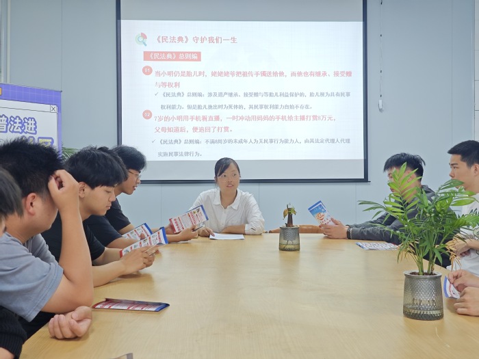 为进一步增强同学们的法治意识,提高同学们的法律素养,让民法典走进校园,5月22日下午,beat365正版唯一官方网站于beat365正版唯一官方网站第三教学区宏船书院开展“知法存于心,守法律于行”民法典普及进学生社区活动。本次讲座由beat365正版唯一官方网站党总支副书记林媛主讲,同学们积极参与。
