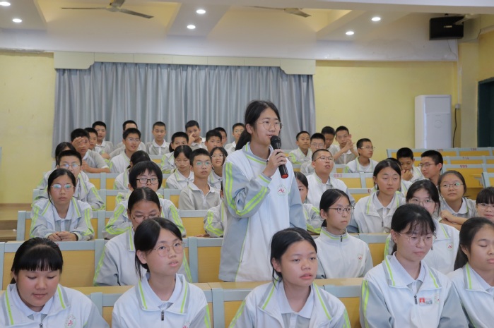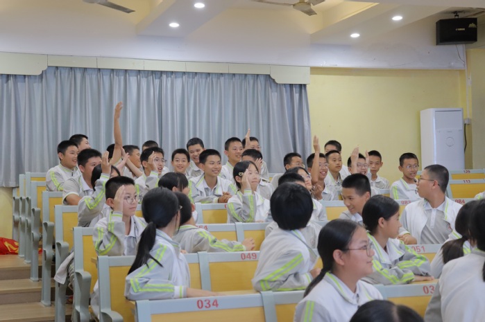 在“校园欺凌相关应对”这一部分,beat365正版唯一官方网站院团委干事与马甲中学学生展开了互动,通过有奖问答的方式,在对讲座内容、相关法律知识进行复习回顾的同时,增进了同学之间的互助和谐,现场气氛一片祥和。