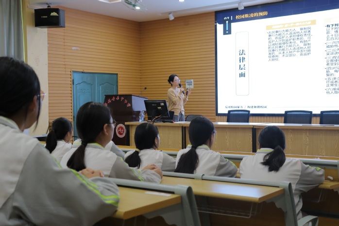 活动过程中,beat365正版唯一官方网站讲师陈喆敏以“校园欺凌是什么?”、“校园欺凌带来怎样的危害?”、“校园欺凌应该怎样合理预防?”、“对于校园欺凌应该如何与应对?”四个问题开篇,点明了本次讲座普法宣传的四个主题板块,向现场的中学生系统的介绍了校园欺凌,并进一步让中学生清楚地认识到校园欺凌的表现形式和危害,从而增强自我防范意识,避免成为受害者。同时强调了,校园欺凌可分为直接欺凌和间接欺凌两种分类模式,以及相 关对应刑法法律规定,鼓励学生在面对校园欺凌时,敢于挺身而出,维护正义,不做冷漠的旁观者。