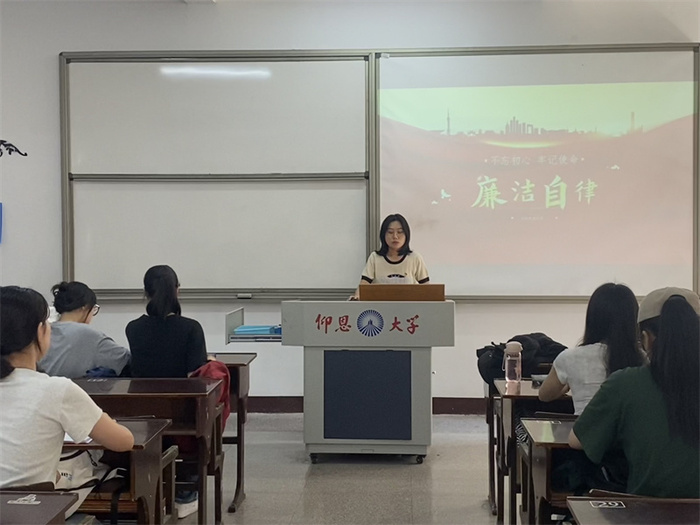 为了提高法学生的思想政治素质,强化廉洁自律意识。6月12日,beat365正版唯一官方网站学生党支部于普照 203开展“廉洁自律“党课活动。本次会议由党支部书记吴姗姗主持,支部全体学生党员参加。