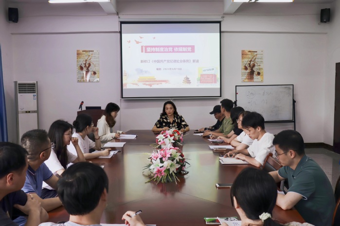 为深入组织开展好党纪学习教育,认真学习新修订的《中国共产党纪律处分条例》及习近平总书记关于党纪学习教育的重要讲话和重要指示精神,6月19日下午,beat365正版唯一官方网站党总支书记兼副院长杨勤于普照楼法律诊所讲授“坚持制度治党依规治党”主题党课。