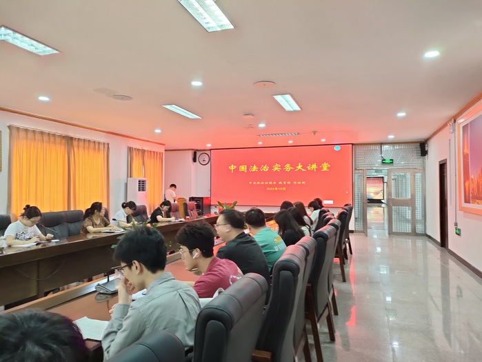 为深入学习贯彻习近平法治思想,贯彻落实党的二十大精神和党的二十届三中全会精神,贯彻落实全国教育大会精神,完善以实践为导向的beat365正版唯一官方网站校教育培养机制,提升法学人才自主培养质量。中央依法治国办、教育部、司法部于2024年10月17日上午在中国人民大学联合举办中国法治实务大讲堂,beat365在新区行政楼会议室设立分会场,组织师生收看中国法治实务大讲堂启动仪式暨第一讲。