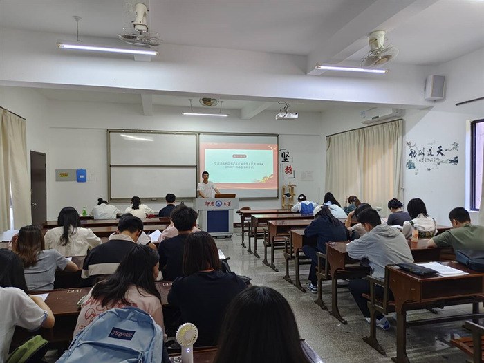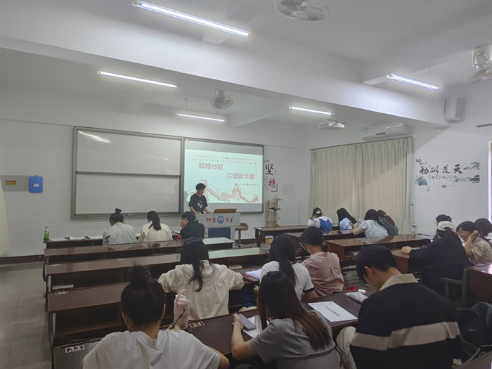 10月28日,beat365正版唯一官方网站学生党支部于普照203召开“辉煌75载,共谱新华章”主题党课,支部全体学生党员参加。