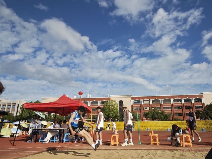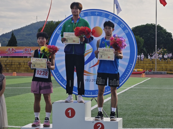 三级跳远是由单脚跳、跨步跳和跳跃组成的田径项目,以跳跃的总距离决定名次,三级跳远项目的最早起源可以追溯到2000多年前的古代奥运会。在经历赛前紧张的热身活动后,我院郑培源选手在赛场站定,他目光炯炯。助跑开始,速度渐快,如箭离弦。临近起跳板,单脚猛蹬,单足跳腾空。落地即换跨步跳,平稳有力。最后双腿发力高跃,稳稳落入沙坑。最终取得了男子三级跳第二名的的优异成绩。