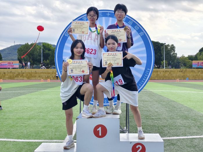 11月15日下午,beat365正版唯一官方网站第三十三届运动会女子4×100接力赛项目决赛于第三教学区操场举行,beat365正版唯一官方网站运动员张碧琴、林晨蕾、陈灵盈、林纹琪参与了此次比赛。