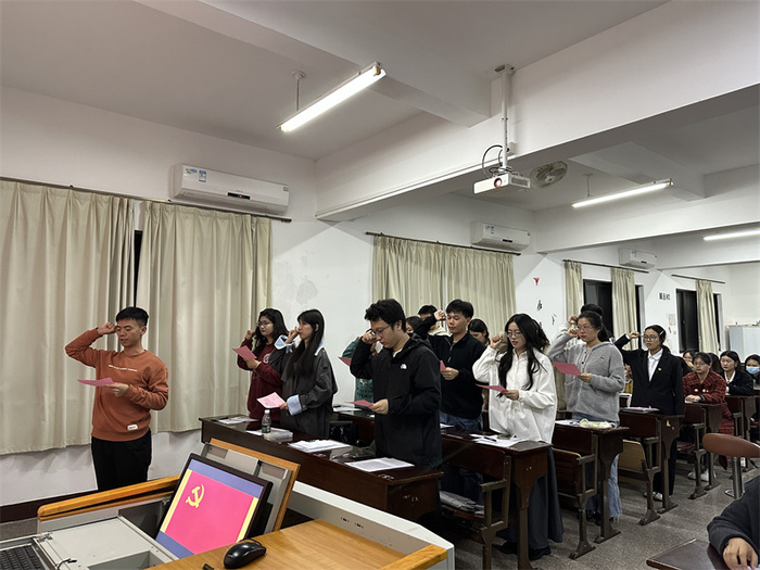 会议伊始,支部书记吴姗姗介绍发展党员工作程序。随后,十四名发展对象依次发表入党志愿后,入党介绍人对同志们在思想、学习和工作上的表现进行介绍,并发表是否同意其入党的意见。经过无记名投票与会党员一致认为,郑泽桓等十四名发展对象已基本具备党员条件,同意接收郑泽桓等十四名同志为中共预备党员。郑泽桓等十四名同志一致表示,将坚守自身入党的信念,贯彻党的理念,为党的事业不断奋斗。会议最后一项,十四名预备党员面向党旗庄严宣誓,以有力的誓词表达奉献党组织的坚定信念。