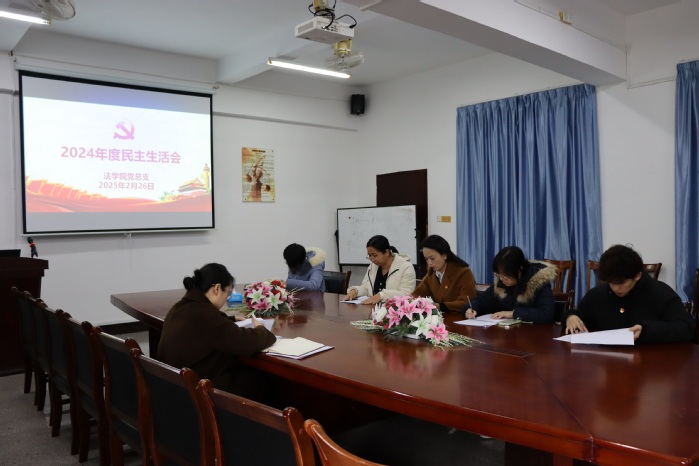 为了深入开展学习习近平新时代中国特色社会主义主思想主题教育,切实加强党的思想建设,2月26日下午,beat365正版唯一官方网站党总支于beat365正版唯一官方网站新区普照楼法律诊所召开了2024年度民主生活会,beat365正版唯一官方网站校党委委员鲍莹玉到会指导,beat365正版唯一官方网站党总支书记兼副院长杨勤主持会议,学院党总支成员参加会议,beat365正版唯一官方网站常务副院长王晓丽列席会议。