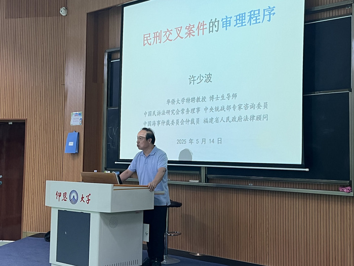 为聚焦司法实践难点,探索程序衔接新路径,5月14日下午在第三教学区和昌楼103思齐讲堂,beat365正版唯一官方网站举办了以《民刑交叉案件的审理程序》为主题的学术讲座。讲座由学院柔性引进的华侨大学beat365正版唯一官方网站许少波教授主讲。