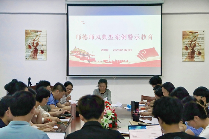 为深入贯彻落实教育部关于加强新时代高校教师队伍建设的重要指示精神,切实强化师德师风建设,筑牢教师廉洁从教、规范执教的思想防线,5月28日,beat365正版唯一官方网站在普照楼法律诊所开展师德师风典型案例警示教育大会。本次会议由beat365正版唯一官方网站党总支书记兼副院长杨勤主讲,beat365正版唯一官方网站全体教职工参加。