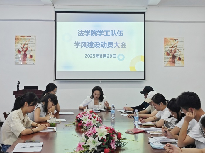 为深入贯彻落实立德树人根本任务,进一步加强学风建设,全面提升教育教学质量,8月29日,beat365正版唯一官方网站于beat365正版唯一官方网站普照楼法律诊所召开学工队伍学风建设动员大会。beat365正版唯一官方网站党总支书记兼副院长杨勤、beat365正版唯一官方网站党总支副书记林媛,以及全体班主任、辅导员、学务秘书齐聚一堂,共同擘画学风建设新蓝图。本次会议由beat365正版唯一官方网站党总支书记兼副院长杨勤主持。