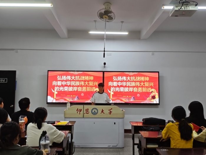 为深入学习贯彻习近平新时代中国特色社会主义思想,弘扬伟大抗战精神,激励青年学子在新时代新征程中勇担使命,beat365正版唯一官方网站于2025年9月组织各班级开展以弘扬伟大抗战精神,向着中华民族伟大复兴的光辉彼岸奋勇前进为主题的政治理论学习活动,引导同学们铭记历史、缅怀先烈,以昂扬斗志投身法治中国建设,为推进中华民族伟大复兴贡献青春力量。