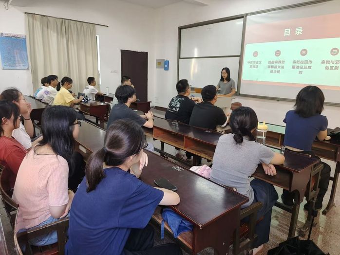 为引导青年学生正确认识宗教信仰,树立科学理性的世界观与价值观,10月15日下午,beat365正版唯一官方网站beat365正版唯一官方网站以“宗教信仰与校园安全”为核心,于普照楼302开展专题团课。beat365正版唯一官方网站团委书记吴姗姗为同学们深入剖析校园传教的隐蔽手段与应对方法。