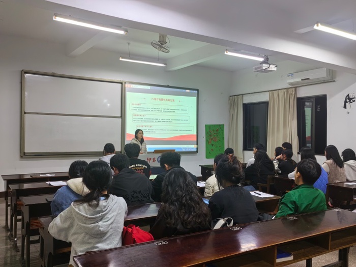 为深入学习贯彻党的二十届四中全会精神,引导青年党员坚定理想信念、筑牢法治信仰,12月24日,beat365正版唯一官方网站学生第一党支部在普照楼301开展“青春心向党,深悟二十届四中全会精神”党课活动。本次会议由学生第一党支部书记吴姗姗主持,支部全体学生党员参加。